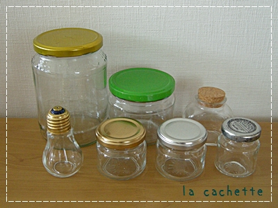 ガラス瓶を集めるのが好きなので、ジャム瓶やはちみつ、