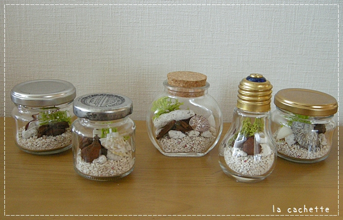 ジャム瓶などの小さめ瓶には、植物を入れずに作ってみました。