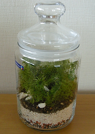 空き瓶でテラリウム楽しんでみました。