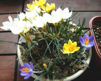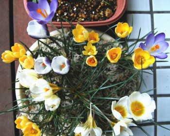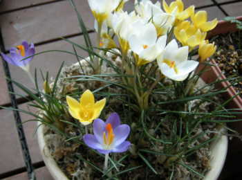 3月のクロッカスです。やっと白だけじゃなく紫も咲き始めました。