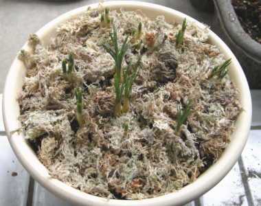 クロッカスの周りにミズゴケを敷いてみました。