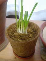 小ねぎが発芽したので、かぶせてあったビニール袋を外して、