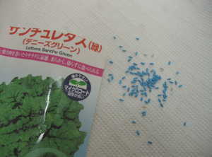 1、種の表面に顔料で色をつけることで土に蒔いた際にわかりやすくするため
